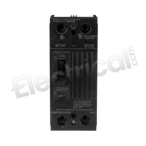 TQD22225WL General Electric Q-Line, Type TQD, 2P, 1PH, 225A, 240V, 10kA@240V, complete with non-interchangeable trip unit and line & load side lug terminals, standard interrupting capacity, 40?C, Feed-Thru, Thermal Magnetic molded case circuit breakers