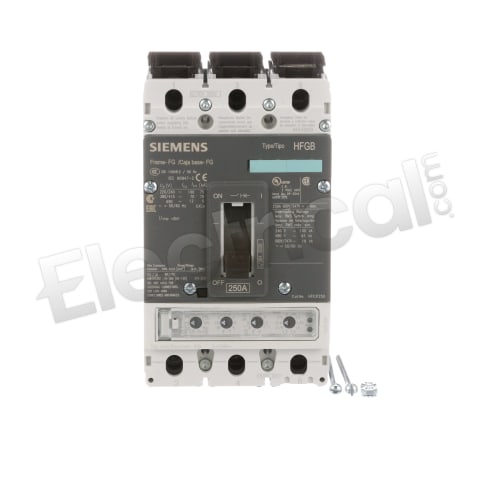 HFK3T250L, Siemens, VL Series, type HFK, FG Frame Frame, 3P, 3PH, 250A, 600V, 65kA@480V, high interrupting capacity, 40°C, Feed-Thru, LSI - Long-Time, Short-Time and Instantaneous trip functions, line & load side lug terminals, Solid State electronic, molded case circuit breakers