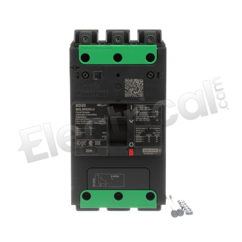 BDL36020LU, Square D, Schneider Electric, PowerPact, type BDL, 3PH, 3P, 600V, 20A, 18kA@480V, Feed-Thru, complete with EverLink connectors, LI - Long-Time and Instantaneous trip functions, Thermal Magnetic, molded case circuit breakers