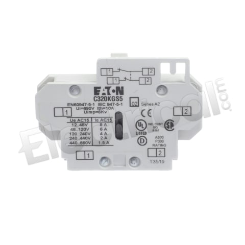 C320KGS5, Cutler Hammer, Freedom Series, side mounted contactor and motor starter auxiliary, for 15-75A 2NC configuration, with standard pressure plate terminals, suitable for use with Size 00-2 AN16 magnetic contactors, motor starters and motor controls