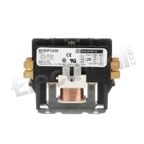 8910DP12V09, Square D, Class 8910, type DP, definite purpose contactor, 1HP @ 115V, 2HP @ 230V, 2P, 1PH, 20A, 600V, complete with 208-240V coil